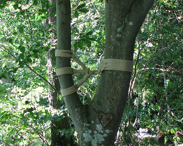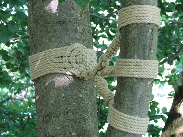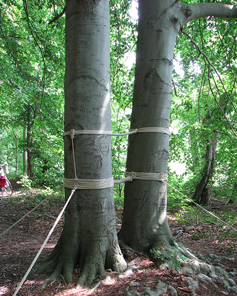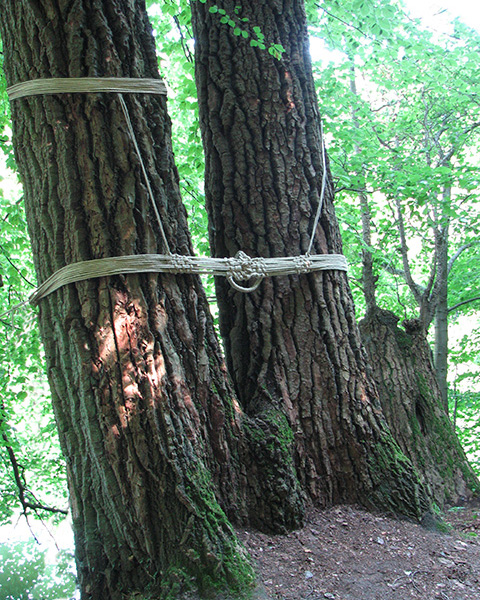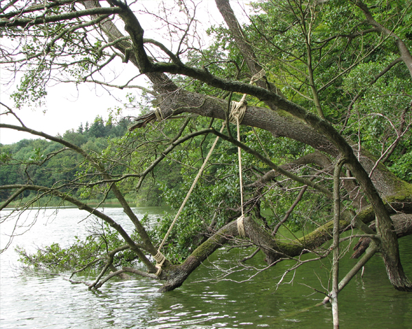 Als Kunstwerke möchte ich die Ergebnisse meiner Aktivitäten rund um den Ukleisee nicht bezeichnen. Doch in der "Blauen Stunde" die Hanfseile um die Bäume zu schlingen, die endlose Stille zu geniessen, ja, das lädt meine Akkus richtig auf!